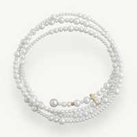 Each necklace is a journey into the world of design, where materials meet symbolic meaning. In the Ambelier necklace collection, noble gold intertwines with the mesmerizing beauty of natural pearls. You'll find both classic, luminous round pearls shimmering in subtle shades of white, pink, violet, or in surprising, multicolored compositions. Each pearl is carefully selected, and its natural form ensures that no two necklaces are identical.